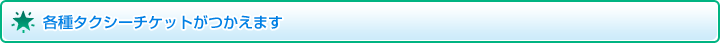 現金を持ち歩かない方やビジネス利用の方にとって便利なタクシーチケットもご利用いただけます。 |